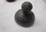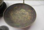 This Assortment of miscellaneous home decor items includes a vintage Chinese cloisonne' enamel bowl with a carved wooden stand, a vintage copper goose on a stand, an antique cast iron advertising paperweight for Cumner, Jones & Co. and more. These items are in previously owned, good condition. Please preview.
