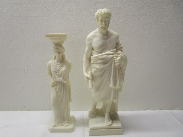 Pair of two Greek statues of (10") Kapyatie and (12") Solon the Athenian statesman. These statues have a smooth white finish. These items are in previously owned, good condition. Please preview.