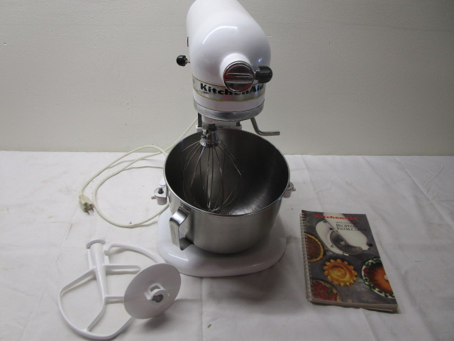 This KitchenAid brand Heavy Duty mixer (model # K5SS) with accessories and recipe and instructional manual is in This item is in previously owned condition. It has been tested and it does work. It is being offered in "as is" condition. Please preview.