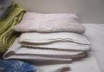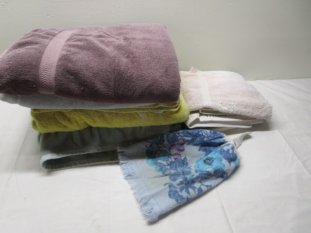 This selection of towels includes four large bath towels and four hand towels. These items are in previously owned, used condition. Please preview.