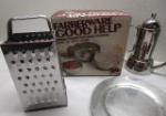 This assortment of household products includes two insulated coffee cups, a pair of industrial doughnut/bagel cutters, a Chef's stainless steel coffee pot, a Fabberware set of storage bowls, and a cheese grater. These items are in previously owned, good condition. Please preview.