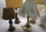 Glass and metal table lamp collection. 7 in all.