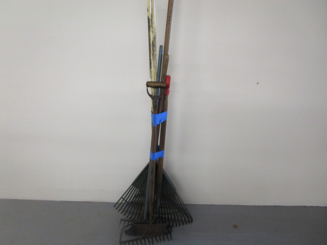 Landscape and Leaf rakes. This snow will eventually go away and rakes will be needed. Good usable condition.