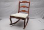 Darling, vintage Statesville style mahogany rocker with cream color velvet chair pad upholstery.