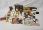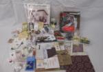 Large collection of miniature, doll house items including rugs, bathroom items, dishes, household items, Christmas decorations, furniture and more.