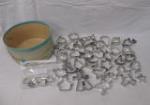 Large assortment of 30+ vintage metal cookie cutters including stars, moons, shamrocks, and more.