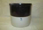 6 Quart Covered Crock in 2 Tone Color with Cobalt Blue Stamp.