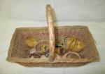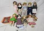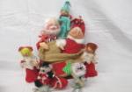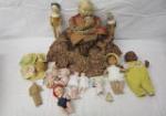 Nice assortment of over twenty folk art corn husk dolls with a woven straw bag with shells.