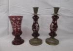 Vintage pair of WMF Wagenfeld style emerald smoke-blown crystal glass vases.