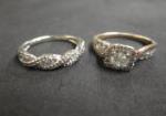 This absolutely stunning pair of wedding rings includes a size 7, 4.0 GTW 1/2 carat solitaire rose gold setting with diamond accenting. Also included is a size 7, 10K, 2.8 GTW white gold band with diamond accents.