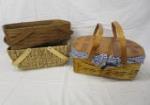Small 7-1/2" wooden Firkin style sugar bucket with a wood handle & lid. Also included is a Shaker style oval box.