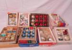 Lot of Christmas decorations including a bag of vintage Santa heads, a Lenox color changing lit ornament and so much more.