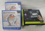 A Vivitar Creator Series Vlogger Audio Stream Sound Mixer in original box that has been opened but retaped and two deep tissue therapy Neck Massagers in original boxes.