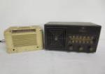 Pair of vintage tabletop tube radios including an Admiral "Super Aeroscope) radio (possibly Model 5R11) and a vintage Emerson (model 556-120018B) tabletop vacuum tube radio with a dark Bakelite style case.