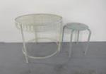 Upgrade your patio with this pair of patio pieces including a vintage mid-century wrought iron style round mesh side table and a similar patio stool (could be used as a small table).