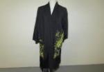 Stunning black silk kimono style robe featuring impressive gold birds and floral embroidery and a beautiful flowing fringe.