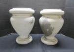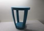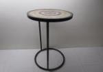 Very nice metal-framed end table with a faux stone top. This table measures 16"W X 16"D X 24"H and features a distinctive dark base with an open, elegant geometric shaped base.
