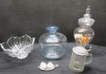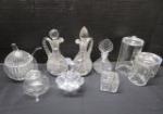 Shannon Crystal stemware in velvet box with Gorgeous Crystal wine glasses and etched footed glasses with a beautiful decanter. Also includes an ice bucket and bar fruit garnish tray.