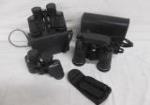 | Four pairs of binoculars including a pair of Bushnell birding binoculars. Other brands include Tasco, Sears, and Traq. |