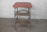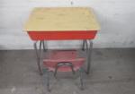 | Vintage school desk with an open front and tan top. |