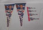 | Assortment of six collectible Patriots pennants (two of which feature Drew Bledsoe). |