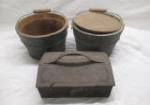 | 3 old crocks with 2 Lids. |