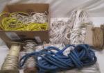 | Box lot of various types and lengths of rope and string. |