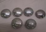 | Six vintage doll carriage wheel caps. Thayer, Siebert and unbranded. |