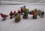 | Tray lot of colorful birds including some battery-powered cardinals that sing, a Stone Critters parrot and more. |