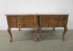 | Pair of gorgeous Hammary vintage French Provincial maple-top side tables featuring two drawers and lovely hardware. |