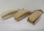 | Trio of vintage AT&T Trimline corded, beige telephones. |