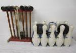 | Beautiful vintage Libbey gold leaf high-ball frosted, bar (8) glass set with carry caddie. |