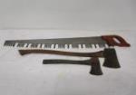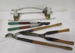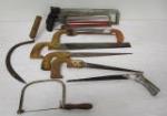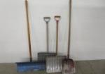 | Garden tools and other tool lot including some garden trowels, a 100ft tape measure, mallets and more. |