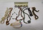 | Very nice collection of vintage jewelry including a gold plated sterling silver rope chain, a pair of Napier earrings, rosary beads, an amber and turquoise beaded necklace and more. |
