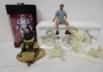 | Beautiful collection of various Chinese hardstone carvings and decorative items from soapstone and/or jade including a two carved figure of Shou Lao (the Chinese God of Longevity), a Chinese "Okimono", laughing Buddas and more. Also included is a vintage Moka coffee pot. |