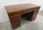 | Vintage Art Deco Anderson & Co. wooden executive desk with geometric wood hardware. Made for Starrett Tools, Athol, Mass. |