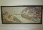 | Nice 34-1/2" X 17" framed print of Michelangelo's famous fresco titled "The Creation of Adam". |