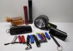 | Collection of seventeen flashlights including various sizes and styles. Also included is an Advance brand portable AM/FM transistor radio. |
