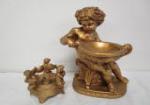| Assortment of vintage home decor items including four trinket boxes and an 8-1/2" X 12" mirror with a shell motif. |