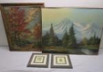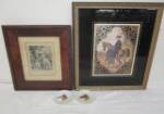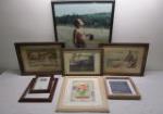 | Framed prints and art work with metal baskets and photo album. |