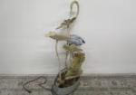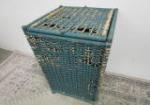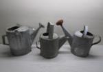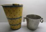 | Tall wooden painted bucket measuring 16 inches tall and heavyweight cast aluminum bucket measuring 9 in tall. |