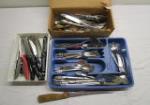 | Silverware selection with beverage tumblers and ice cream pint cooler. |