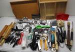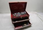 | Craftsman 2-piece Rolling Tool Chest featuring a stacked design commonly used for organizing tools. The top chest consists of five drawers and lift top compartment. The bottom section has one drawer and storage area. This item includes a variety of tools. |