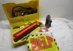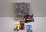 | Vintage toy gyroscope missing string, two small tins of multiverses puzzles, D'Addario Prelude cello replacement string and 1999 Madison Square Garden New York All-Star Game autographed program. |