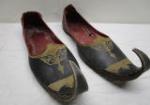 | Unique pair of late handcrafted 19th century traditional Ottoman/Mojari leather shoes featuring curled, upturned toes. |