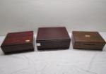 | Three Wooden humidor boxes. |