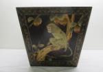 | Gorgeous 13" W X 14"D X 14" H vintage black lacquer hand painted (gilded Chinoiserie style) wooden box featuring monkeys in tropical trees. This item has handles on two sides. |