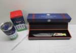 | Donald Trump Presidential Memorabilia , Bowie knife and inauguration 20 oz tumbler. |
