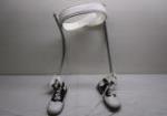 | Pair of child's saddle shoes with polio brace attached, vintage item. |