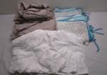 | Pair of turquoise and white quilted pillow shams by pocket full of posies and King size? Taupe linen duvet cover with pillow shams. |